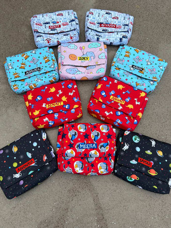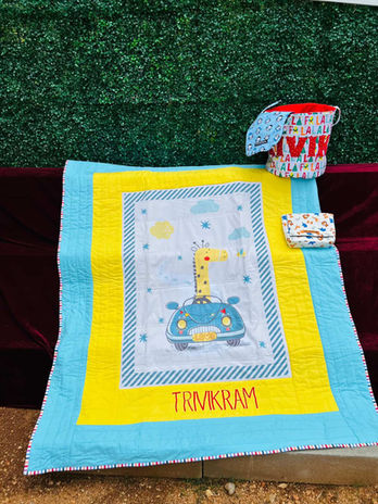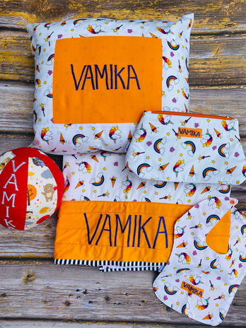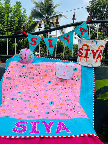 We let our clients choose the fabrics first and then make them , we also add their names on the product to give that personalised touch .